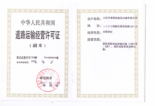 2017年7月18日,中俄總理第二十一次會晤會議上我公司被確定為中俄兩國開展危險品公路過境運輸**試運行企業。為了保證**道路運輸**,我公司按歐洲標準重新訂購了60輛液化石油氣危險品運輸車輛,已有16輛車落戶并辦理完成了**道路運輸營運證,**聯運資質車輛證照齊全。